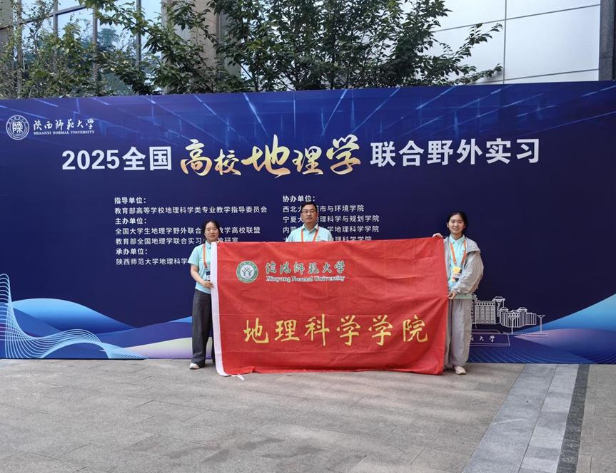 2025年7月29日上午,第十六届全国高校地理学联合野外实习在陕西师范大学田家炳会堂开幕,英国365官网颜伟副教授和2023级地理科学专业学生王颀涵、王佳文参加了开幕仪式。