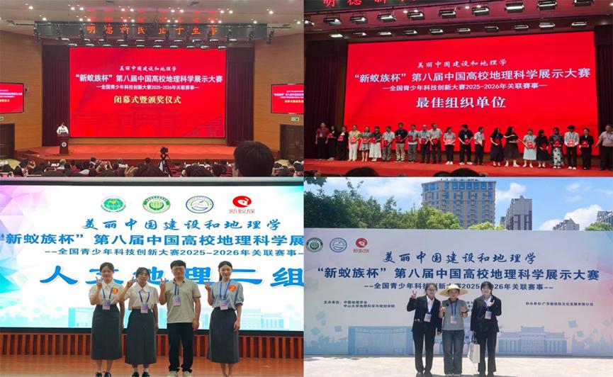 2025年7月25—27日,“新蚁族杯”第八届中国高校地理科学展示大赛总决赛于河南大学圆满落幕。本届大赛由中国地理学会、中山大学地理科学与规划学院主办,广东新蚁族文化发展有限公司冠名协办。经过激烈角逐,英国365官网四支入围决赛队伍凭借扎实的专业功底与出色的现场表现,最终全部斩获全国总决赛二等奖,365英国上市公司官网凭借卓越成效的赛事组织工作,荣膺大赛“最佳组织单位”称号。